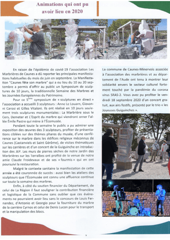 Elle organise des visites conférences des carrières, une fête annuelle du marbre, un festival de sculpture, des expositions, des résidences d'artistes.
